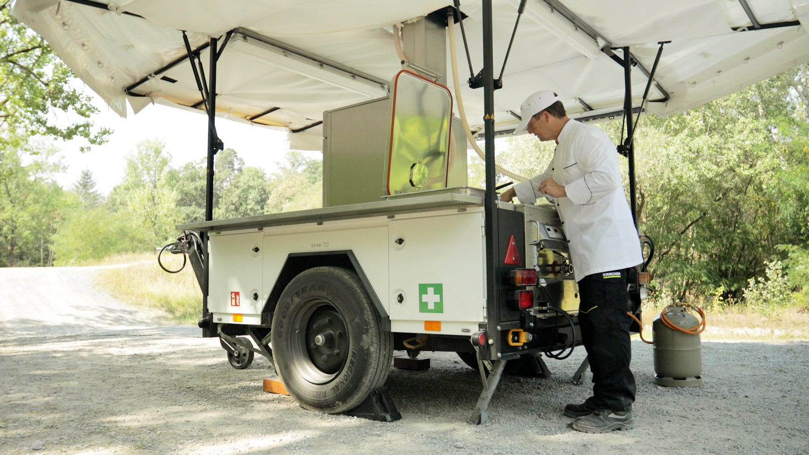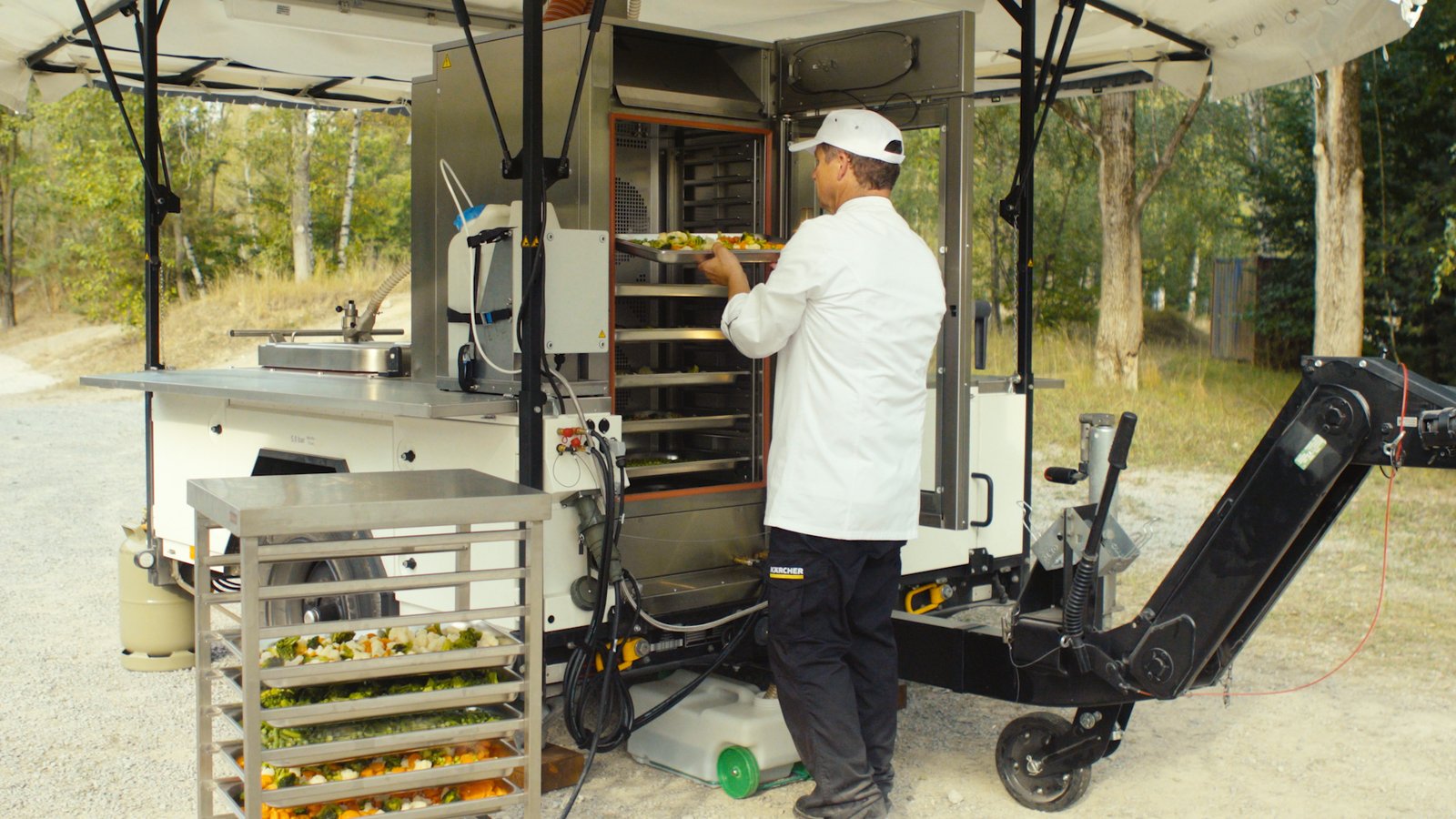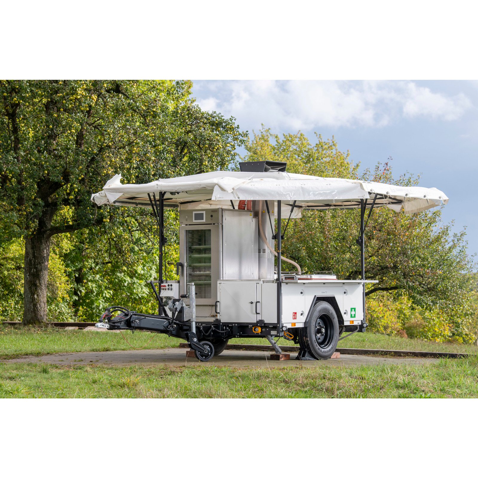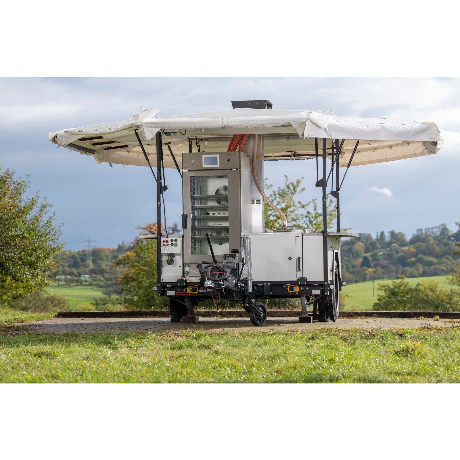 Modularité Totale : Ses quatre emplacements permettent de configurer la cuisine selon vos besoins (marmites, sauteuses, fours mixtes). Les modules peuvent fonctionner sur la remorque ou être déposés au sol pour une installation fixe.